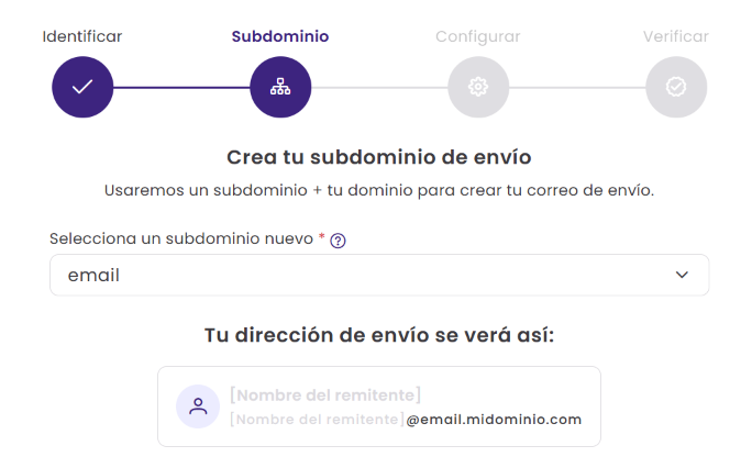 - El envío desde un subdominio mantiene separada la reputación de tus emails de marketing del dominio principal.