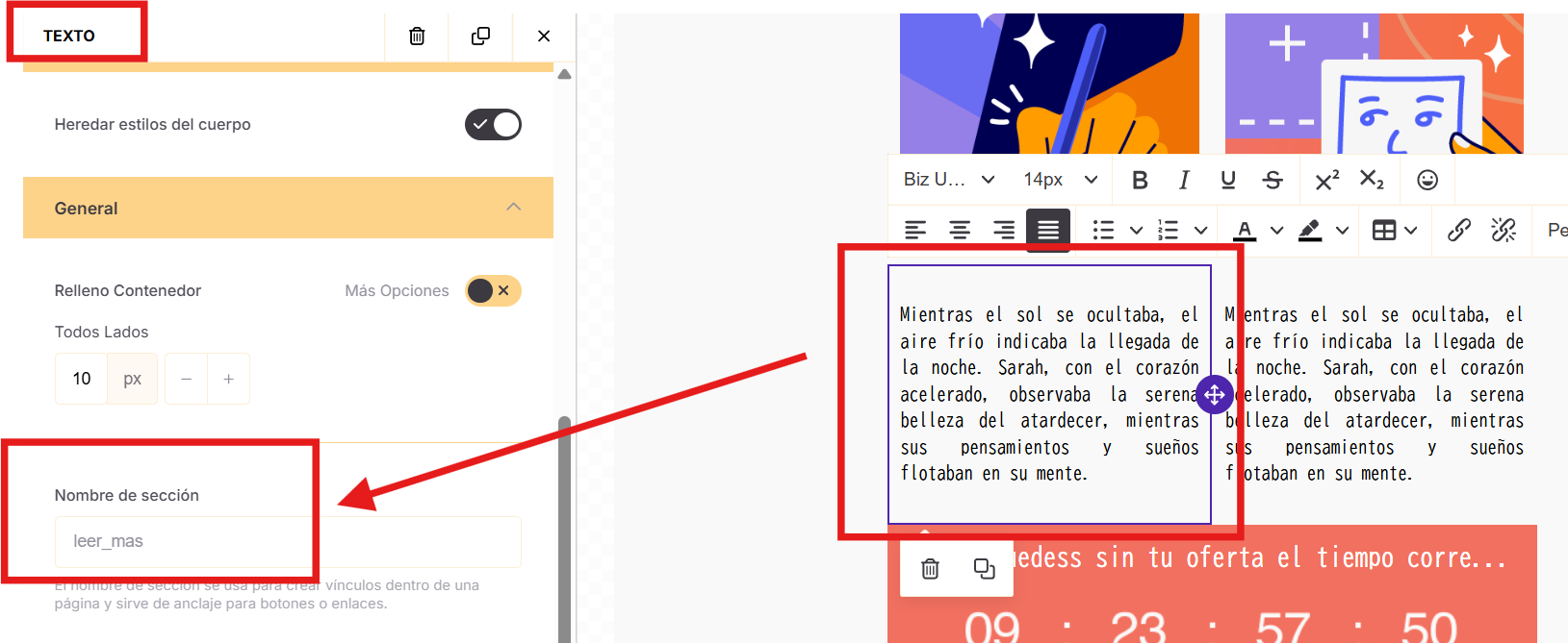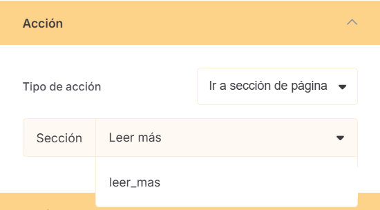 Para usar “Ir a una sección”, primero debes asignar un nombre a la sección desde las propiedades del bloque.