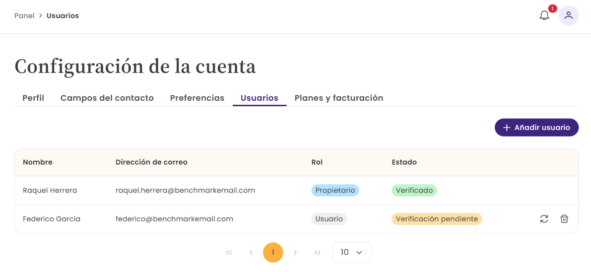 - Una vez que un usuario ha sido añadido a la cuenta, no se puede modificar su dirección de correo electrónico.