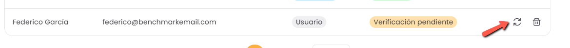- Verificación pendiente: el usuario aún no ha creado una contraseña. Puedes hacer clic en Reenviar para volver a enviar el email de verificación.