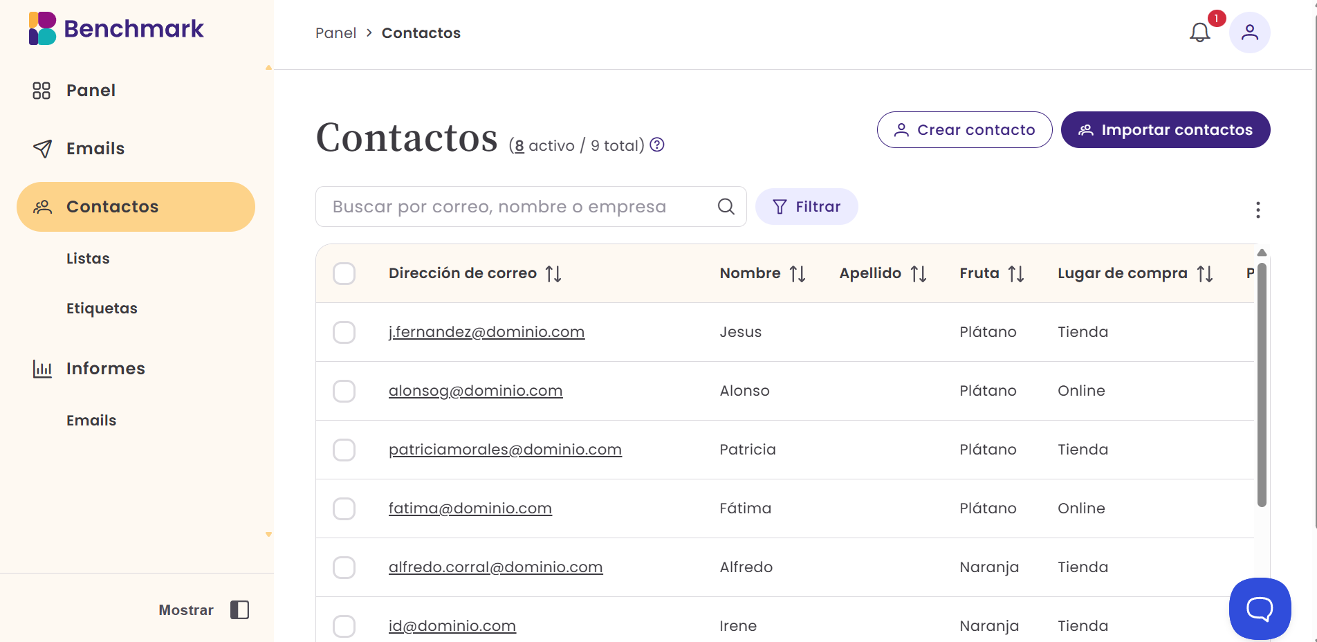 - Importa tus contactos en el nuevo Benchmark.