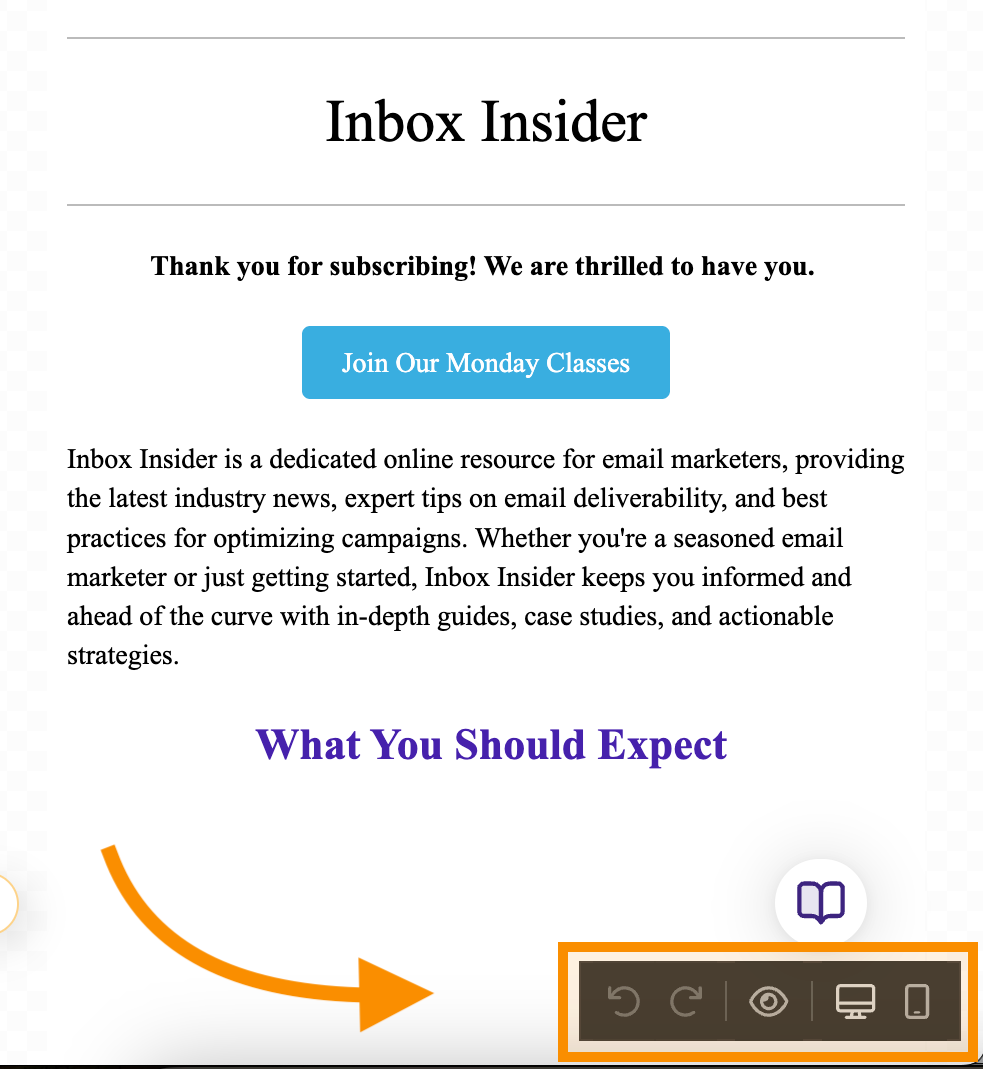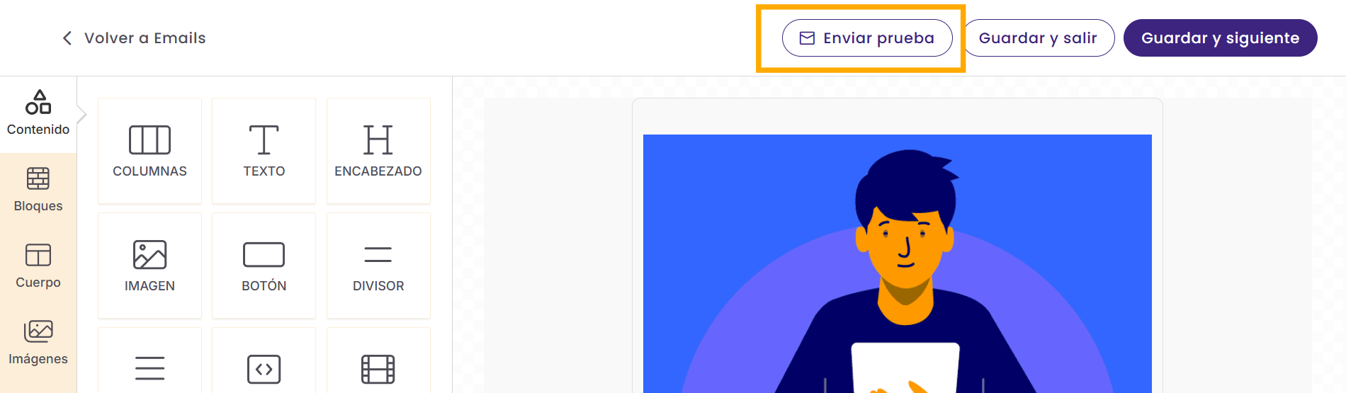 Desde ahí puedes previsualizar tu email y cambiar entre vista de escritorio y móvil.
