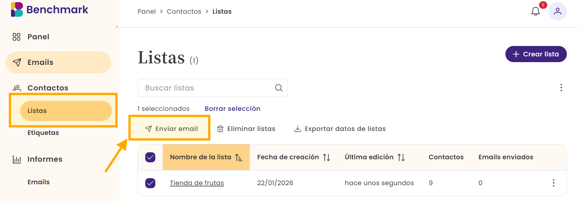 Las listas en Benchmark funcionan de forma similar a los segmentos de Benchmark Clásico: se crean a partir de criterios específicos.