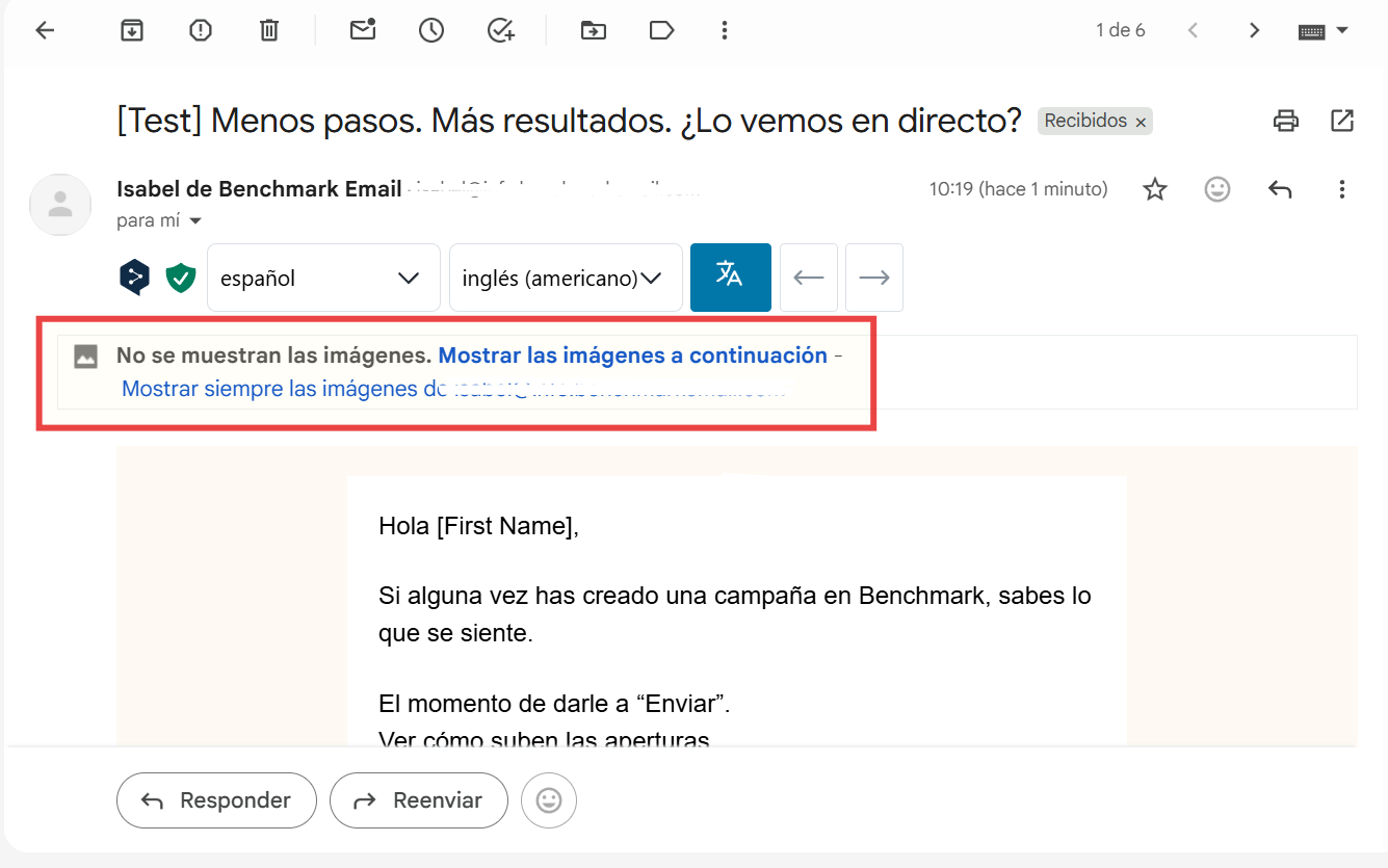 En algunos casos, el destinatario verá un mensaje en la parte superior del email con la opción “Mostrar imágenes” o “Descargar imágenes”.