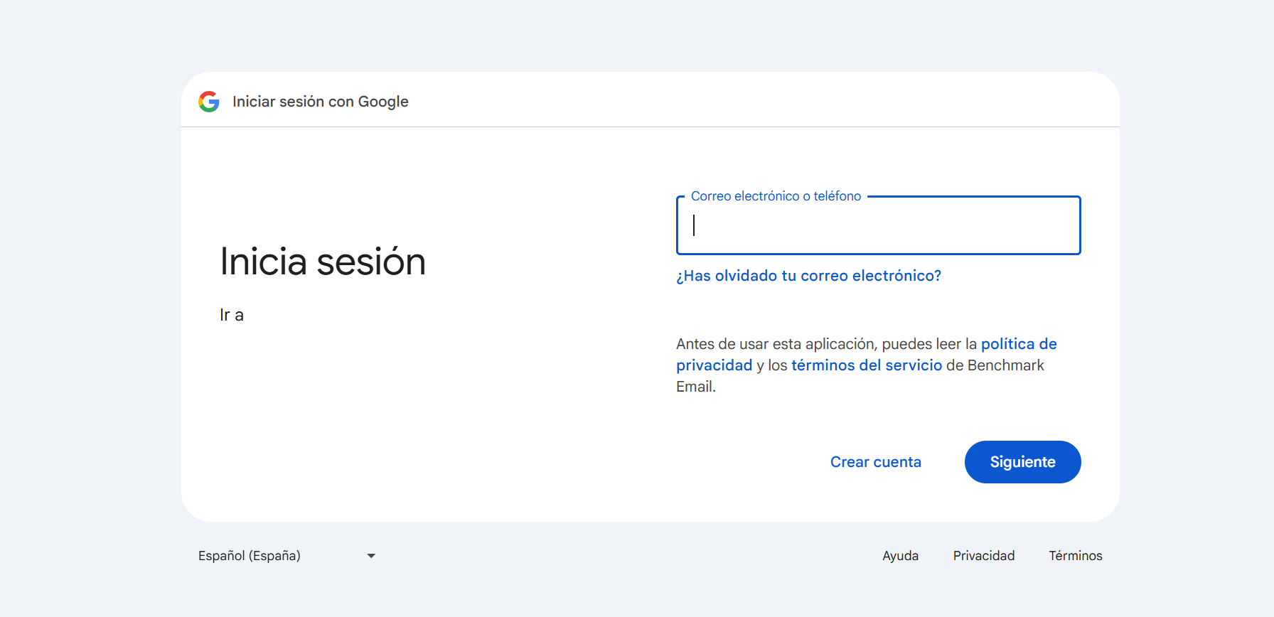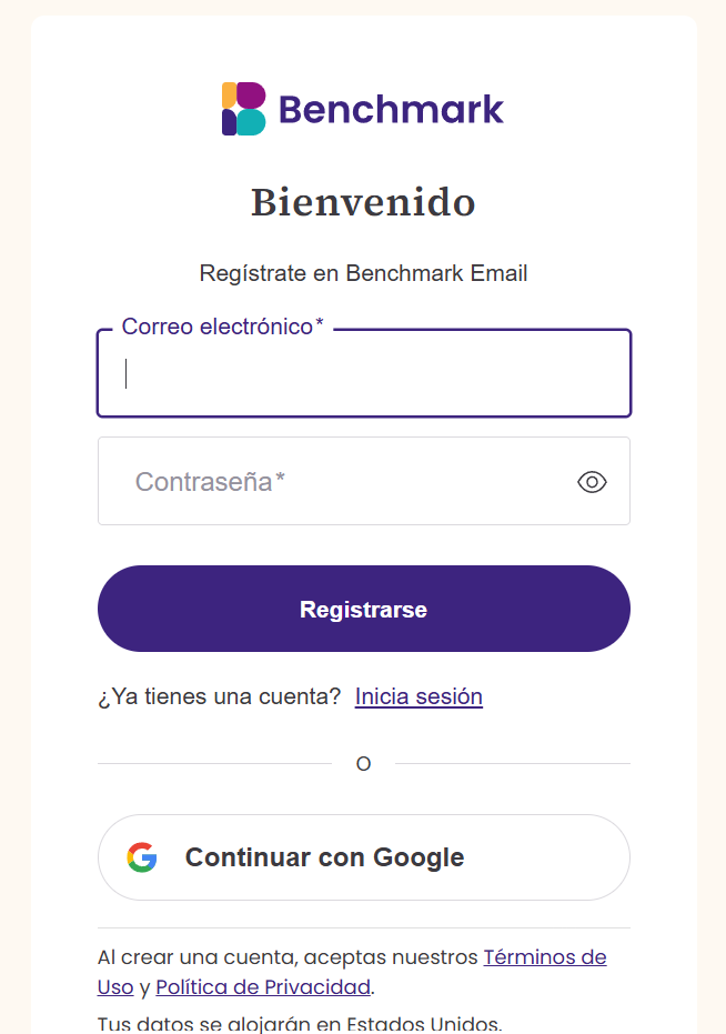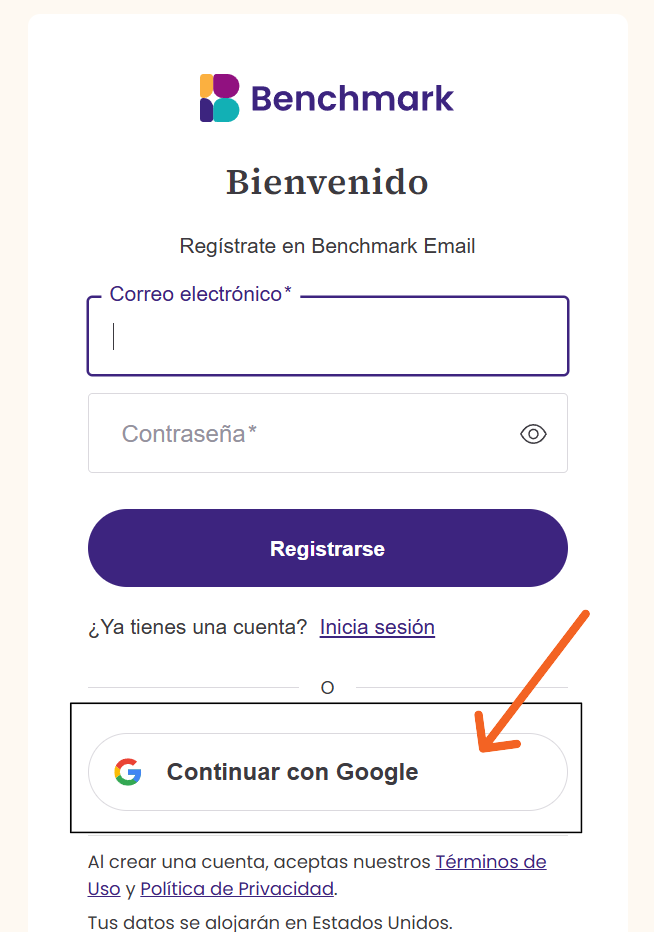 - Si te registras utilizando la opción de inicio de sesión con Google, deberás seguir utilizando este método para acceder a tu cuenta de Benchmark Email.