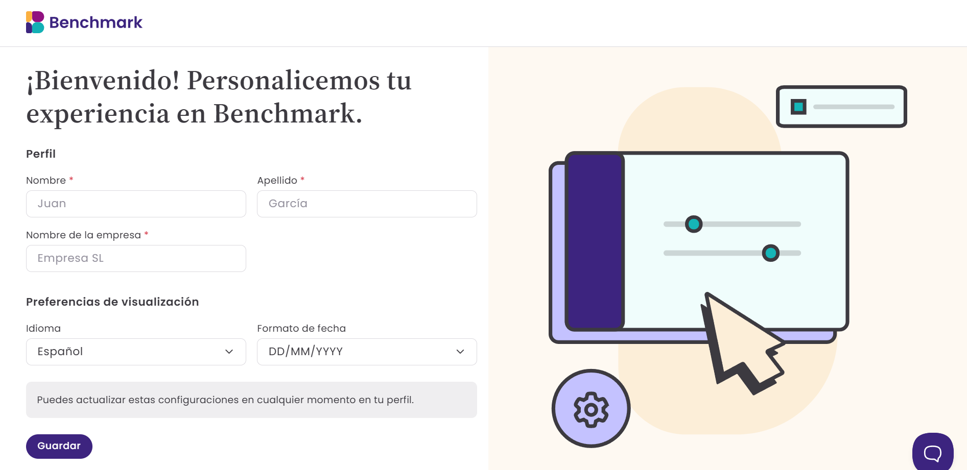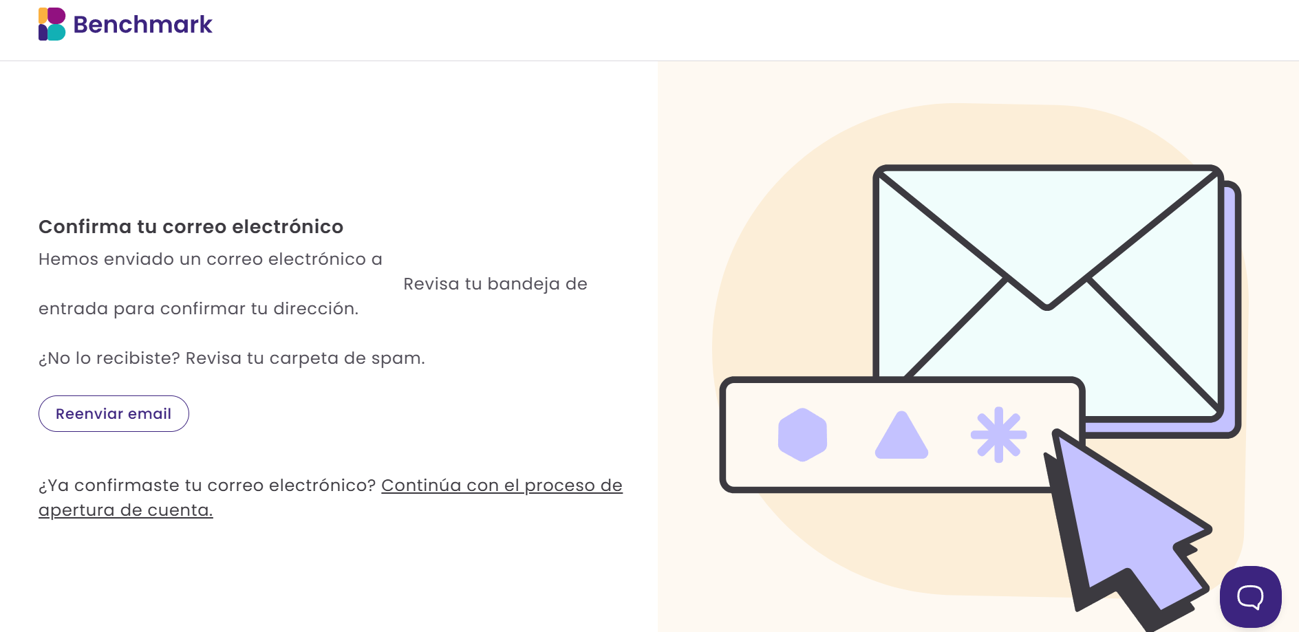 - Una vez confirmado, serás dirigido a tu cuenta del nuevo Benchmark.