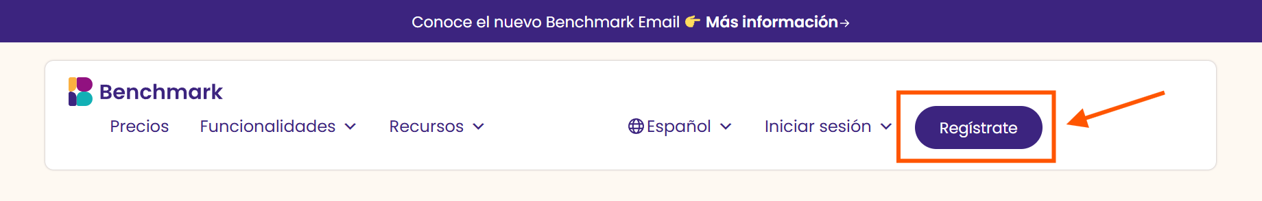 - Visita el sitio web de Benchmark Email y haz clic en Regístrate.