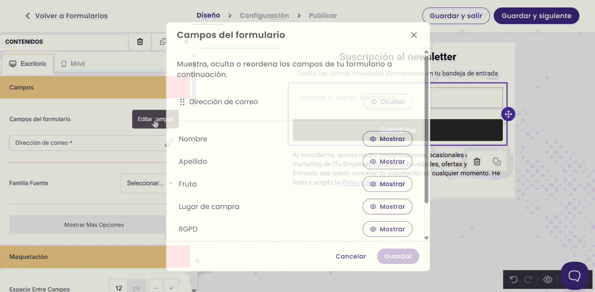Campos del formulario