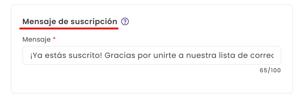 Es el mensaje que verán los usuarios después de suscribirse al formulario.